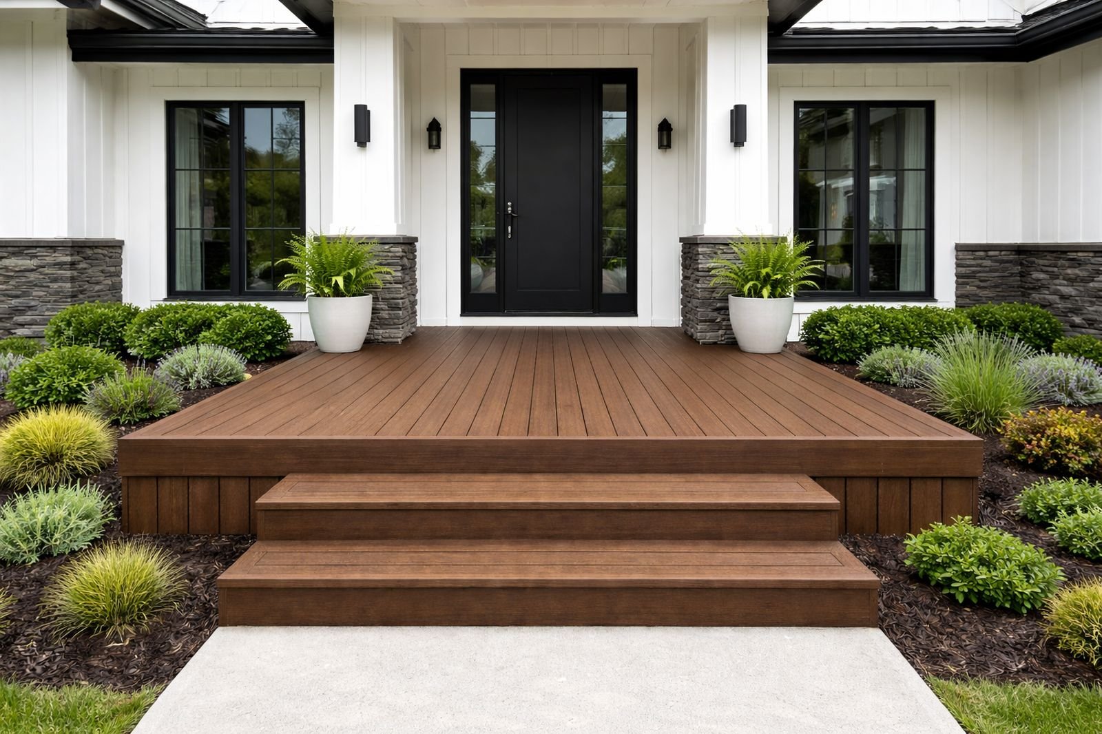 Upgrade your outdoor living space with Chocolate Brown composite decking, complete with edge and fascia boards, for a durable, stylish, and long-lasting decking solution.