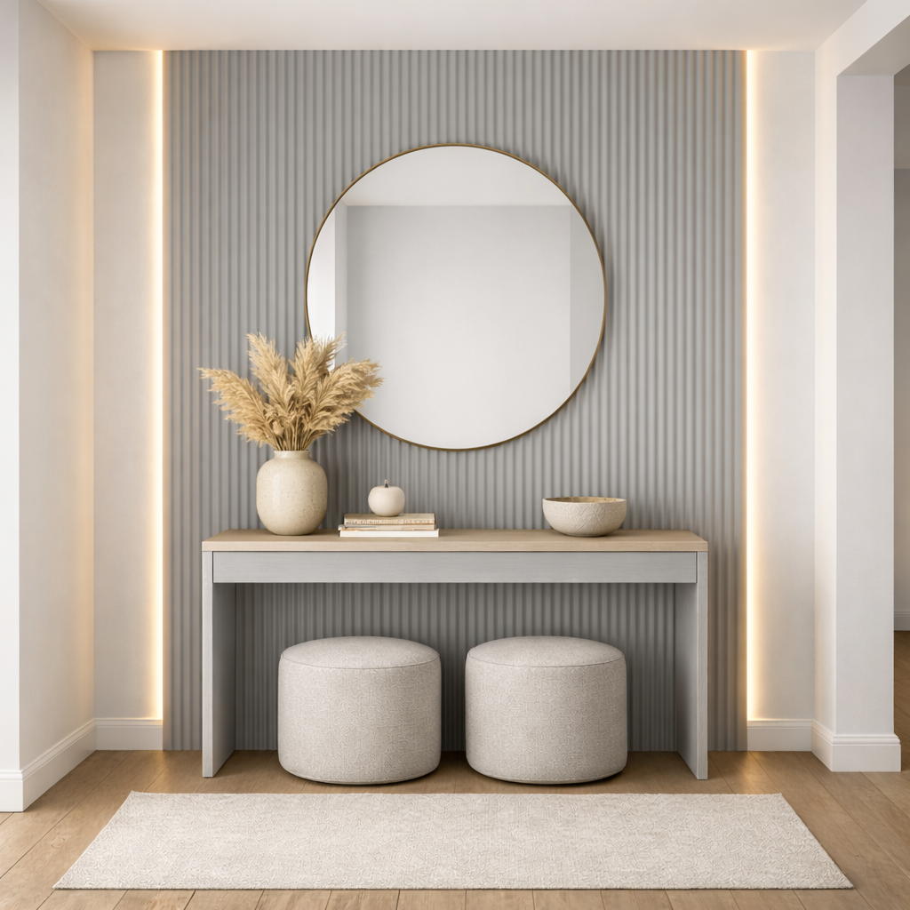 Perfect for entry walls, TV feature walls, bedrooms, offices, restaurants, and retail spaces, the vertical half-moon design adds depth and texture while maintaining a clean contemporary aesthetic.