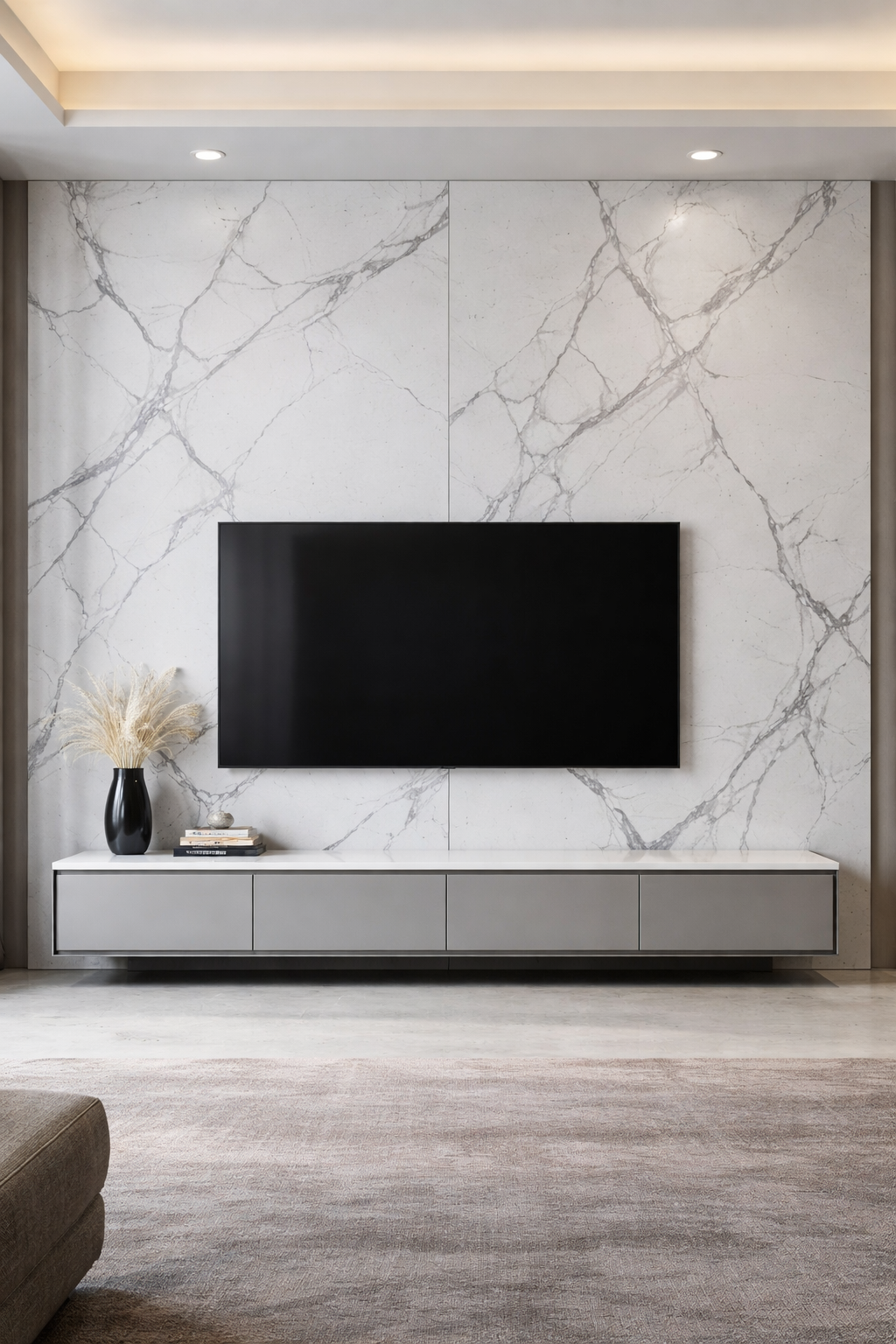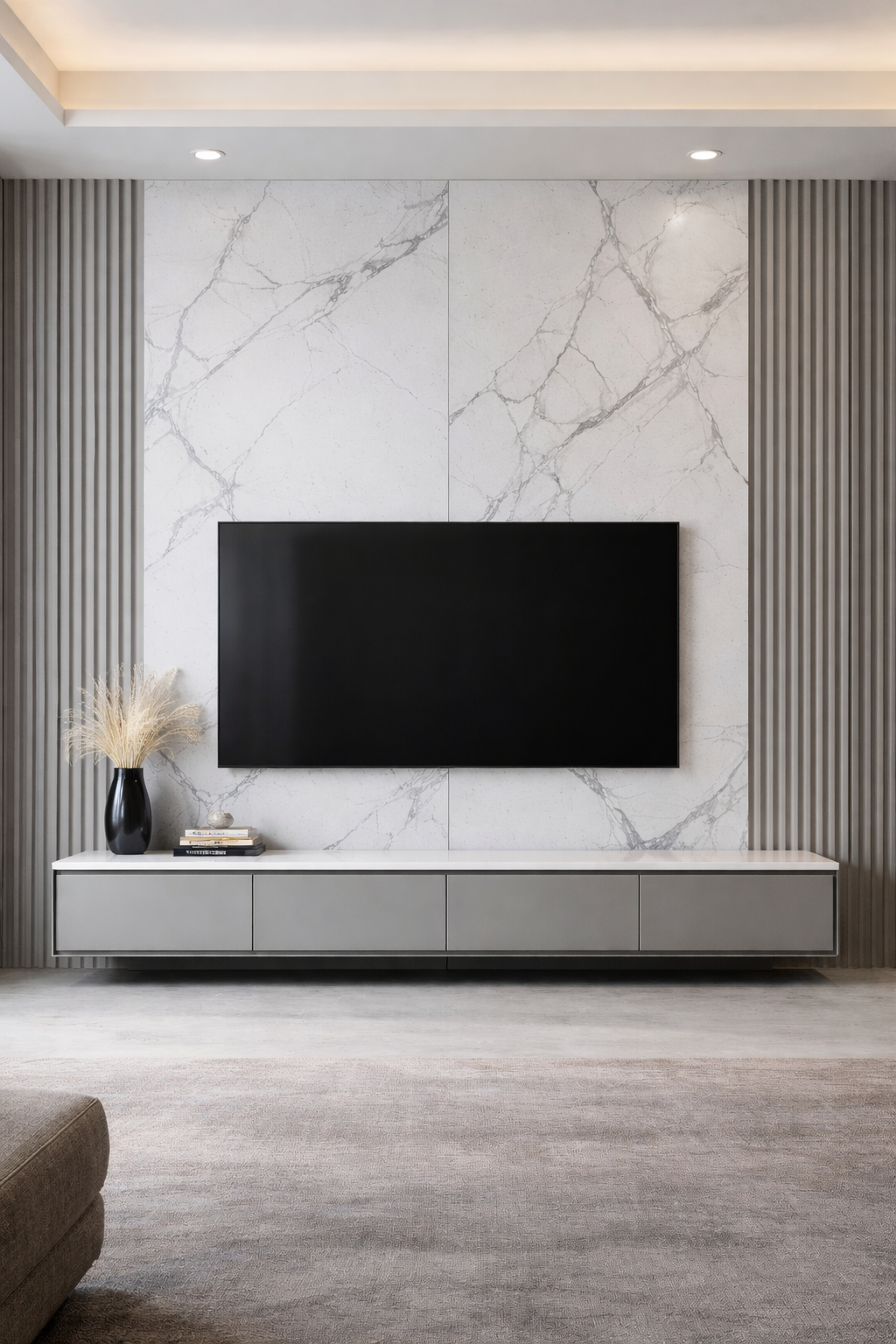 Create a stunning designer TV wall or statement feature wall with this elegant marble sheet. Pair it with VJ panels or vertical cladding on the sides for a complete modern look.
